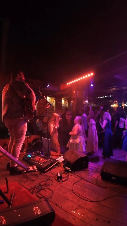 Zane is a dynamic singer and guitarist known for delivering high-energy, crowd-pleasing covers that span generations and genres. Armed with a powerful live looping setup, he skillfully layers harmonies, basslines, and percussion in real time, creating a rich, full-band sound with just one set of hands.
